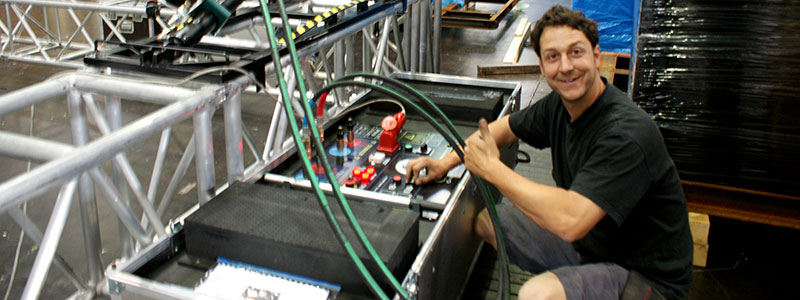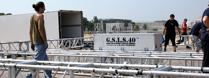 The GSLS does not need people or cranes pushing the tower: everything is done using the control panel located in the flight case.